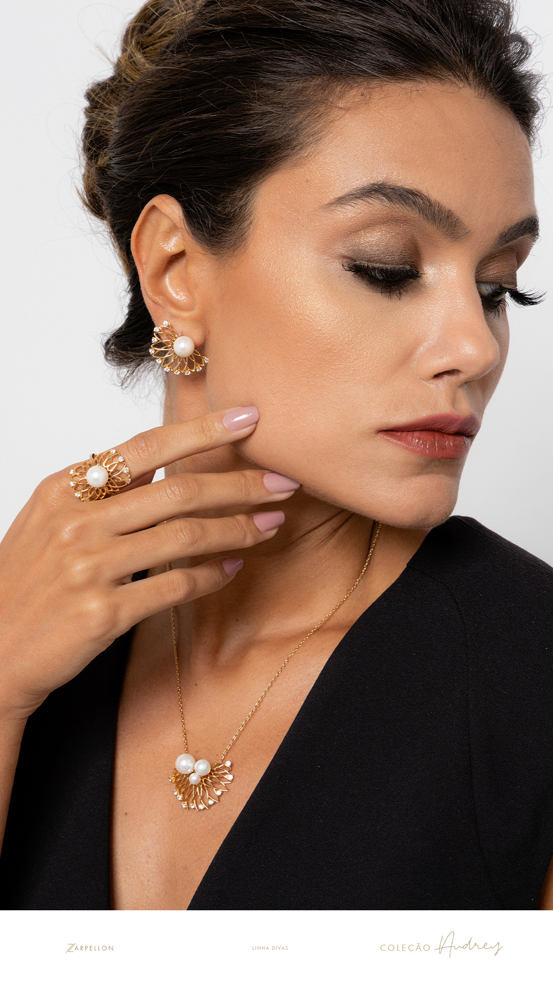 Com pérola cravejada ao centro e zircônias brancas nas pontas