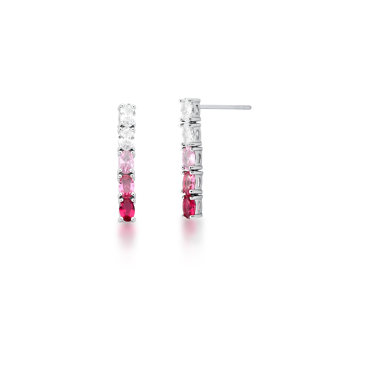 Aposte nesse brinco banhado a ródio com pêndulo com zircônias ovais na cor marsala, rosa e branco, trazendo um charme a mais para o seu visual.