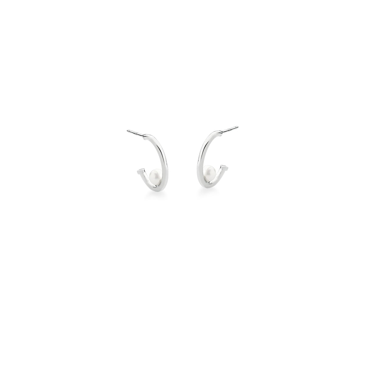 MEIA ARGOLA LISA COM PÉROLA PRATA ENVELHECIDA